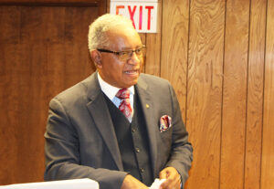 A scripture reading by Deacon Thomas Kirby and an Offertory Prayer by Deacon Michael Evans led to the introduction of the speaker by Pastor James Willis.